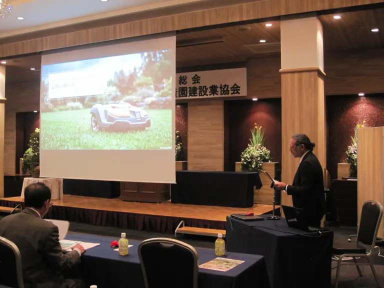 総会終了後、協会賛助会員として広報の機会を得て、アルパイン吉田が新しいハスクバーナ・オートモアの紹介をいたしました。